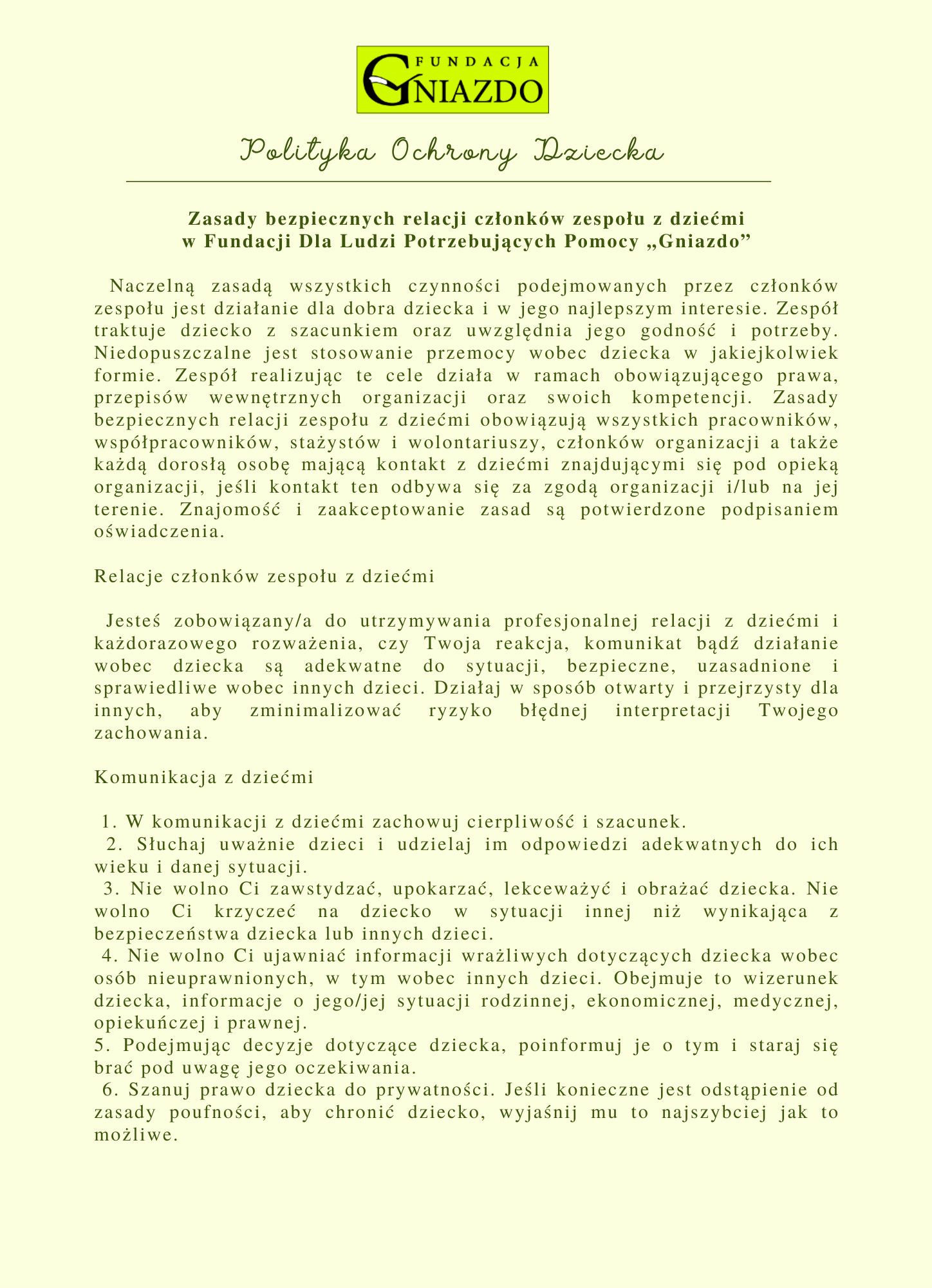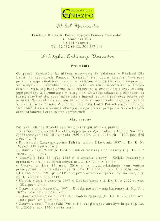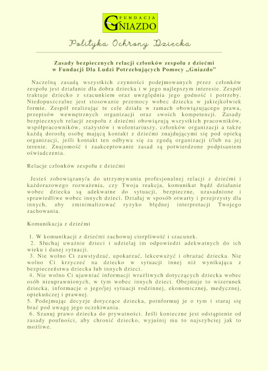 Fundacja Dla Ludzi Potrzebuj±cych Pomocy "GNIAZDO"