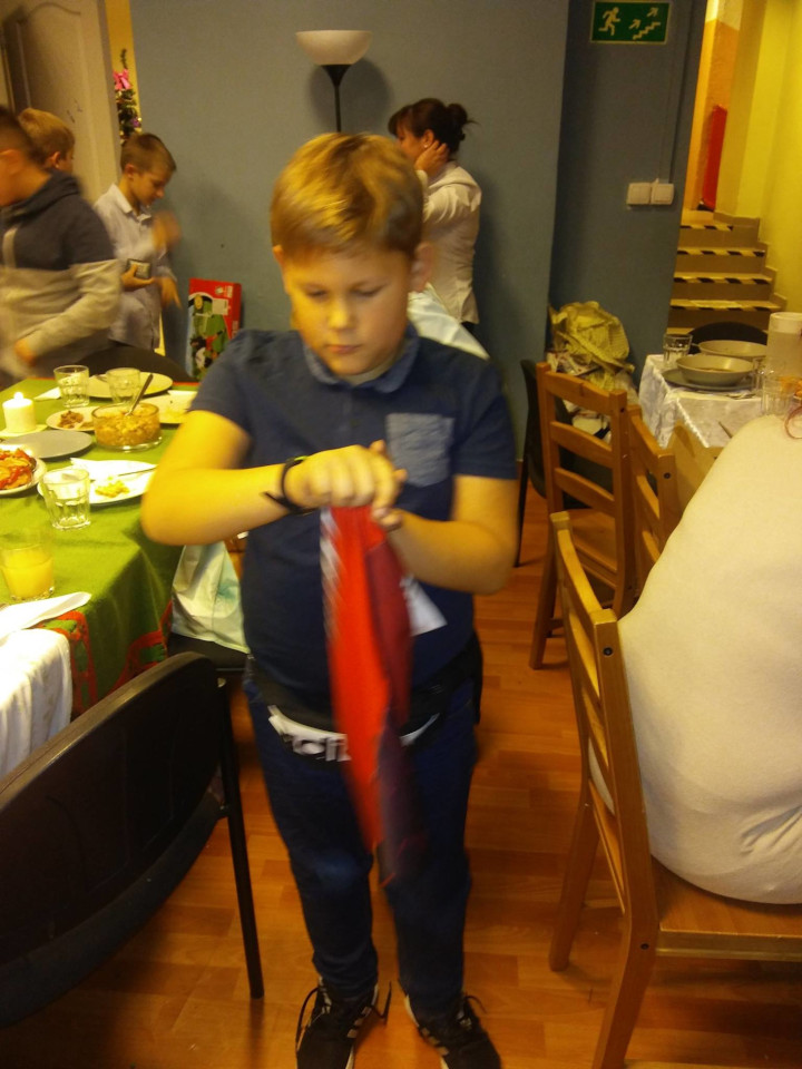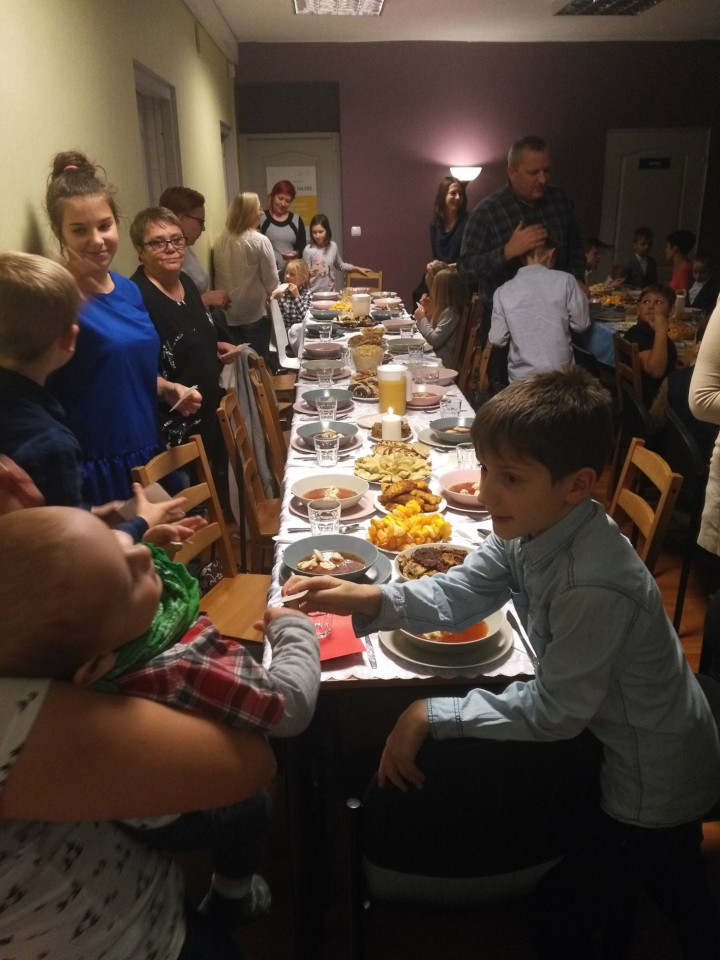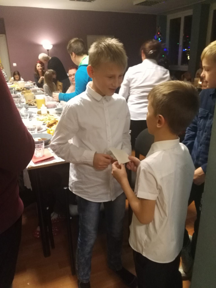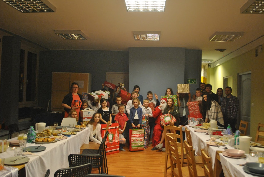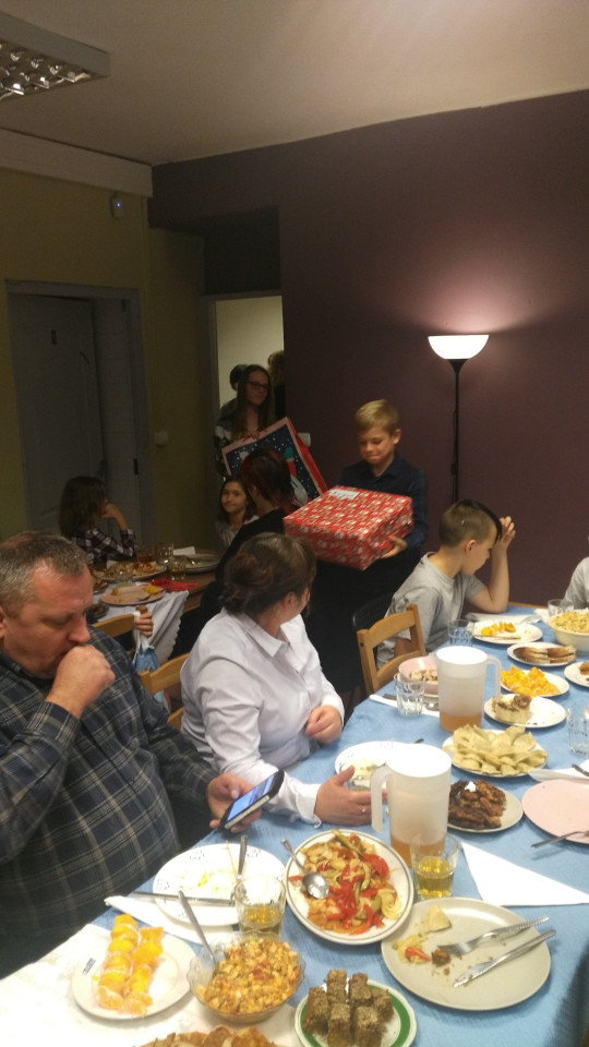 W czwartek 20.12.2018 roku odby³o siê spotkanie wigilijne w ¦wietlicy Socjoterapeutycznej. Przygotowywali¶my siê do niego bardzo d³ugo. Zarówno wychowawcy, jak i podopieczni do³o¿yli wszelkich starañ, aby spotkanie by³o wyj±tkowe. W tym roku zaprosili¶my równie¿ rodziców, aby mogli w radosnej i spokojnej atmosferze spêdziæ przed¶wi±teczne popo³udnie. By³o naprawdê cudownie. Zaczêli¶my zgodnie z tradycj± od czytania Pisma ¦wiêtego i dzielenia siê op³atkiem, a pó¼niej mogli¶my zasi±¶æ do sto³ów (w sumie 12 po³±czonych i ustawionych w trzech rzêdach!!!) i spróbowaæ wielu, pysznych dañ wigilijnych. ¦piewali¶my wspólnie kolêdy. W zwi±zku z tym, ¿e dzieci by³y bardzo grzeczne przez ca³y rok otrzyma³y bardzo du¿e prezenty. Dziêkujemy wszystkim osobom i firmom, które zaanga¿owa³y siê w organizacjê spotkania wigilijnego. Szczególnie jeste¶my wdziêczni pracownikom ING Banku ¦l±skiego, pracownikom Polpharmy, Urzêdowi Miasta w Katowicach, Kulczyk Foundation. Dziêkujemy rodzicom, którzy tak licznie przybyli na spotkanie. By³o nas niemal¿e 60 osób!
