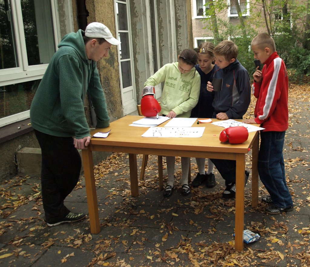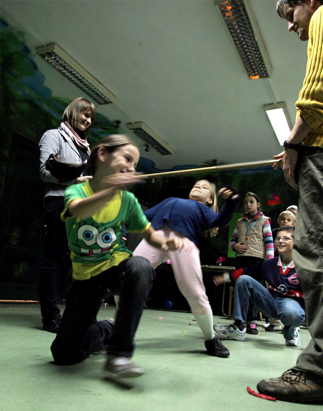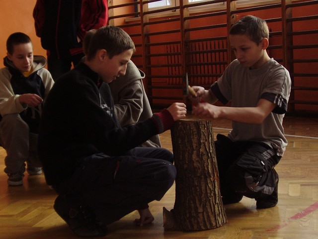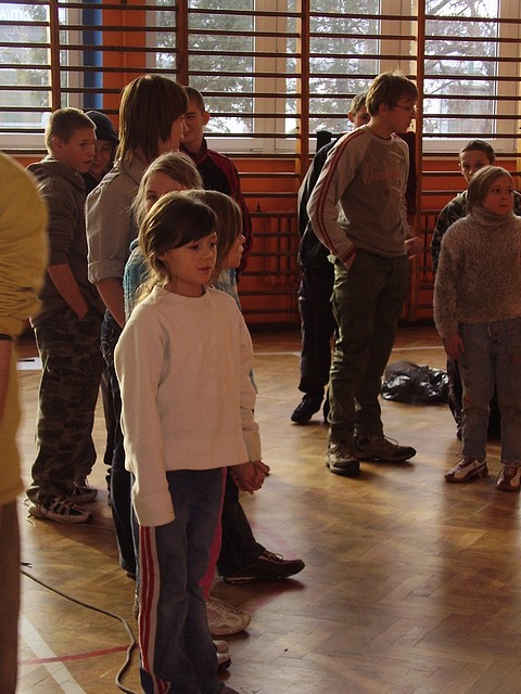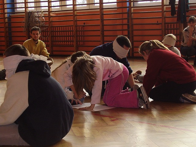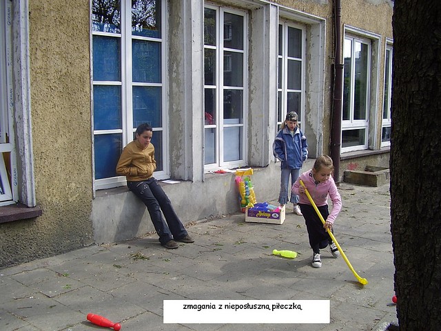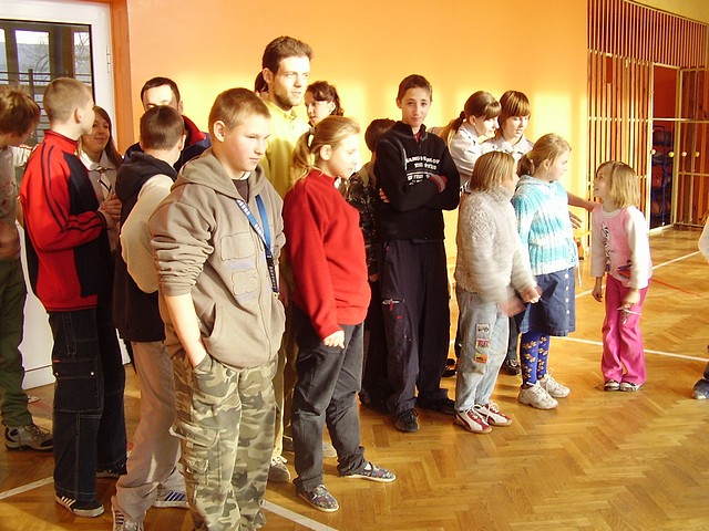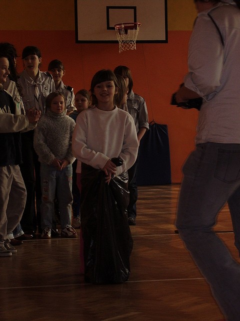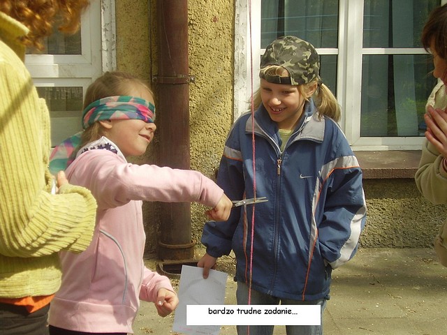 Harcerze z VIII dru¿yny zaprosili nas do siebie na zajêcia integracyjne. Mieli¶my szansê stan±æ z nimi w szranki w zawodach sportowych. Konkurencje tylko z pozoru by³y trudne. Któ¿ nie pokona³by toru przeszkód z pi³kami lekarskimi, upu¶ci³by jajko z ³y¿eczki, nie przeskoczy³by odcinka kilkudziesiêciu metrów w worku lub nie zdo³a³ zje¶æ jab³ka zawieszonego na nitce? Zabawa by³a wy¶mienita.