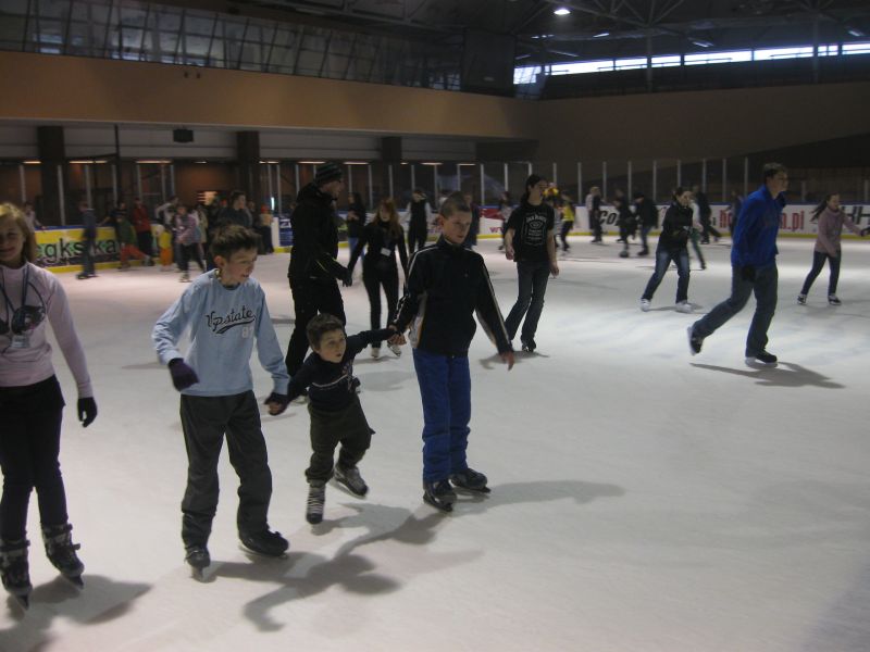 Lodowisko w Spodku - to miejsce, gdzie dobrze bawi± siê zarówno nasi m³odsi, jak i starsi podopieczni. Najwiêcej wra¿eñ maj± ci, którzy ³y¿wy zak³adaj± po raz pierwszy. Nawet du¿a liczba upadków nie jest w stanie ich zniechêciæ od szaleñstw na lodzie. Zawsze zreszt± znajdzie siê kto¶, kto pomo¿e stawiaæ pierwsze kroki.