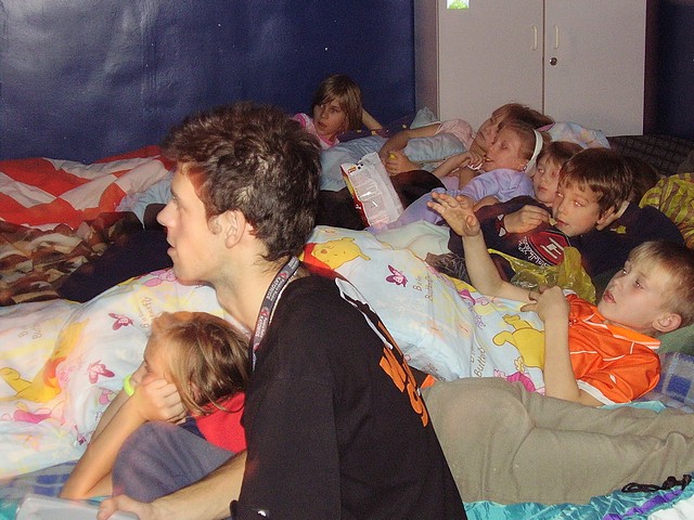 Wieczorna zabawa w ¶wietlicy z nocowaniem? Czemu nie... Kilka godzin spêdzonych w towarzystwie kolegów i kole¿anek z grupy na przygotowywaniu smako³yków, zabawach integracyjnych i spaniu w ¶piworach to du¿a dawka niezapomnianych wra¿eñ. Ju¿ my¶limy o tym, ¿eby zabawê powtórzyæ...